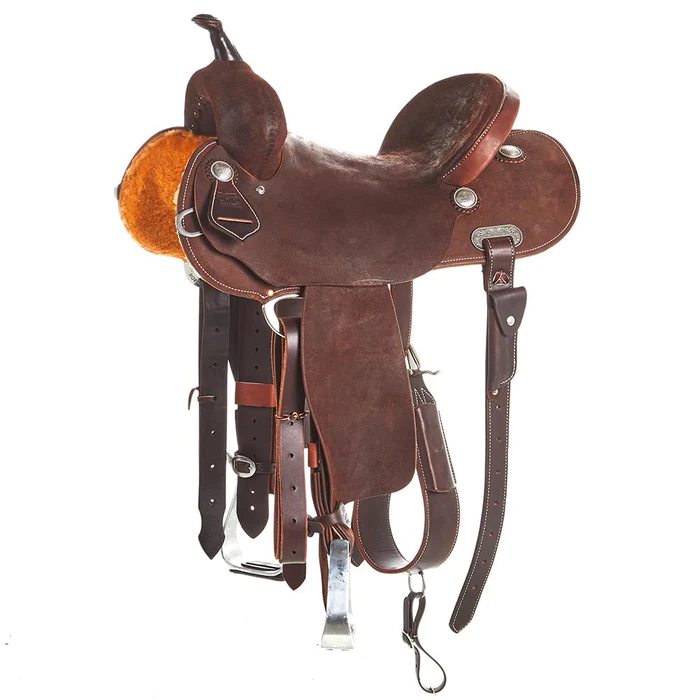 Burns Saddlery offers the 15 Inch 30HD Chocolate Roughout Barrel Saddle featuring a 15 Inch Hard Seat and a 3 1/4″ Tall Horn. This saddle is designed with a medium seat rise (MD) that allows riders to keep their hips rolled back while also providing the flexibility to stand up quickly. The MD tree configuration is the most popular among Burns Barrel Saddles. The 30 Tree with flatter bar angles is ideal for horses with less withers and more of a square back. The saddle is crafted with Chocolate Rough Out Leather and a Round Skirt. It also comes with Aluminum Barrel Stirrups and is handmade in Salina, Utah. The product number for this saddle is BR-3000-15-30-MD.