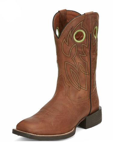 This 11” square toe western boot has a larger platform and bold new look in hazel tan cowhide with dynamic top-notch stitching. Round pull holes add a jolt of color and make these boots easy to slip on or off. With upgraded leather and breathable lining, a removable orthotic comfort insole, and an oil-and-slip resisting outsole, the Bowline brings you premium quality and performance at an excellent value.